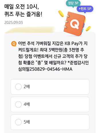 ▶KB페이 오늘의 퀴즈 9월 3일 문제 및 정답