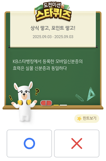 -KB페이 오늘의 퀴즈 오전 10시, 맞히면 10P