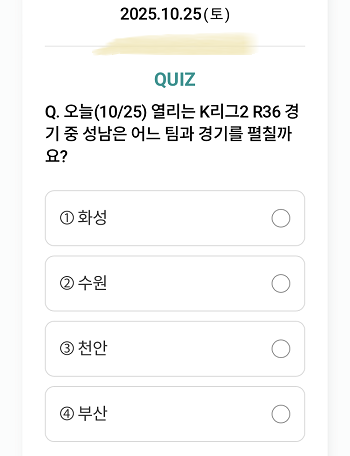 오늘(10/25) 열리는 K리그2 R36 경기 중 성남은 어느 팀과 경기를 펼칠까요?
