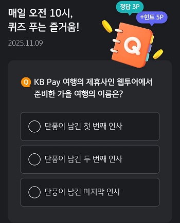 ▶KB페이 오늘의 퀴즈 11월 9일 문제 및 정답