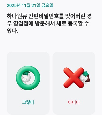 하나원큐 간편비밀번호를 잊어버린 경우 영업점에 방문해서 새로 등록할 수 있다.