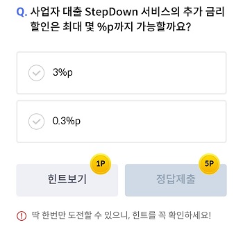 사업자 대출 StepDown 서비스의 추가 금리할인은 최대 몇 %p까지 가능할까요?