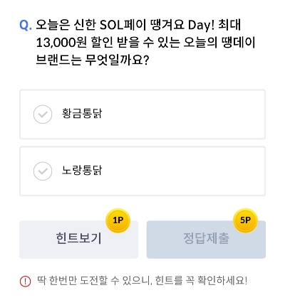 오늘은 신한 SOL페이 땡겨요 Day! 최대 13,000원 할인 받을 수 있는 오늘의 땡데이 브랜드는 무엇일까요?