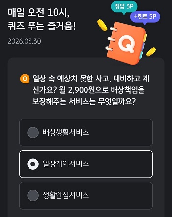▶KB페이 오늘의 퀴즈 3월 30일 문제
