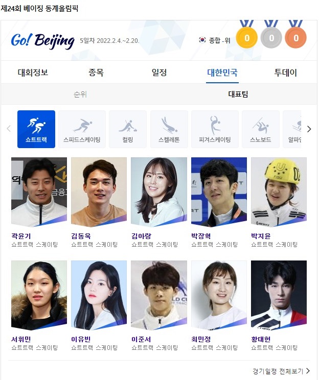 2022년 베이징 동계올림픽 한국 경기 일정