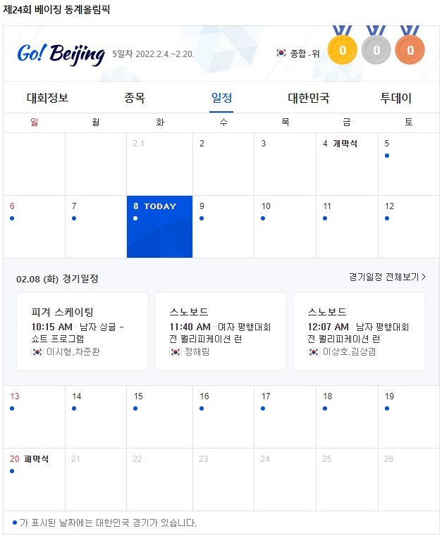 [2022년 제24회 베이징 동계올림픽 일정]