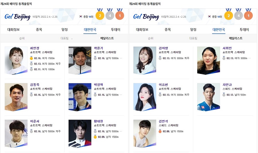 2022 베이징 동계올림픽 대한민국 메달 순위 폐막식